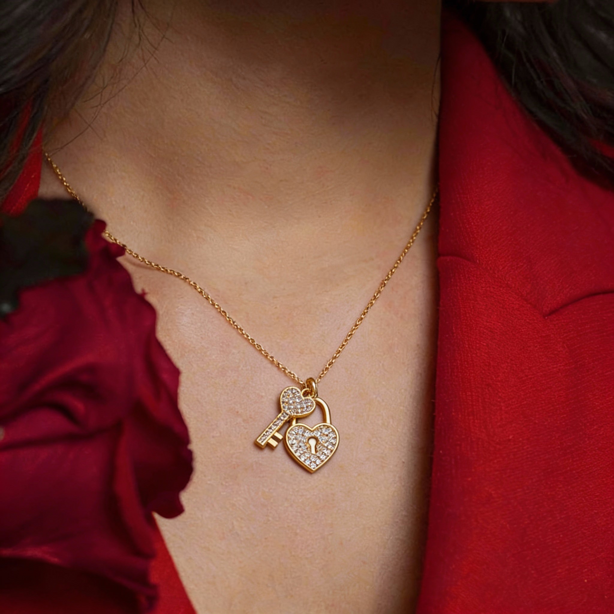 The Heart necklace. featuring a heart and a key. symbolizes eternal love.