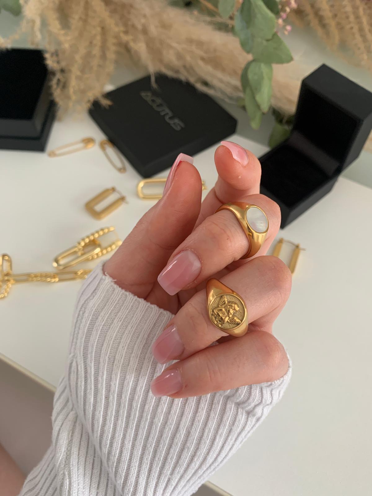 Make a fashion statement with the Acutus signet ring. Its traditional design and shimmering white stone will transport those around you to another dimension. This timeless design pairs beautifully with many of our other rings. It also looks stunning and classic on its own.