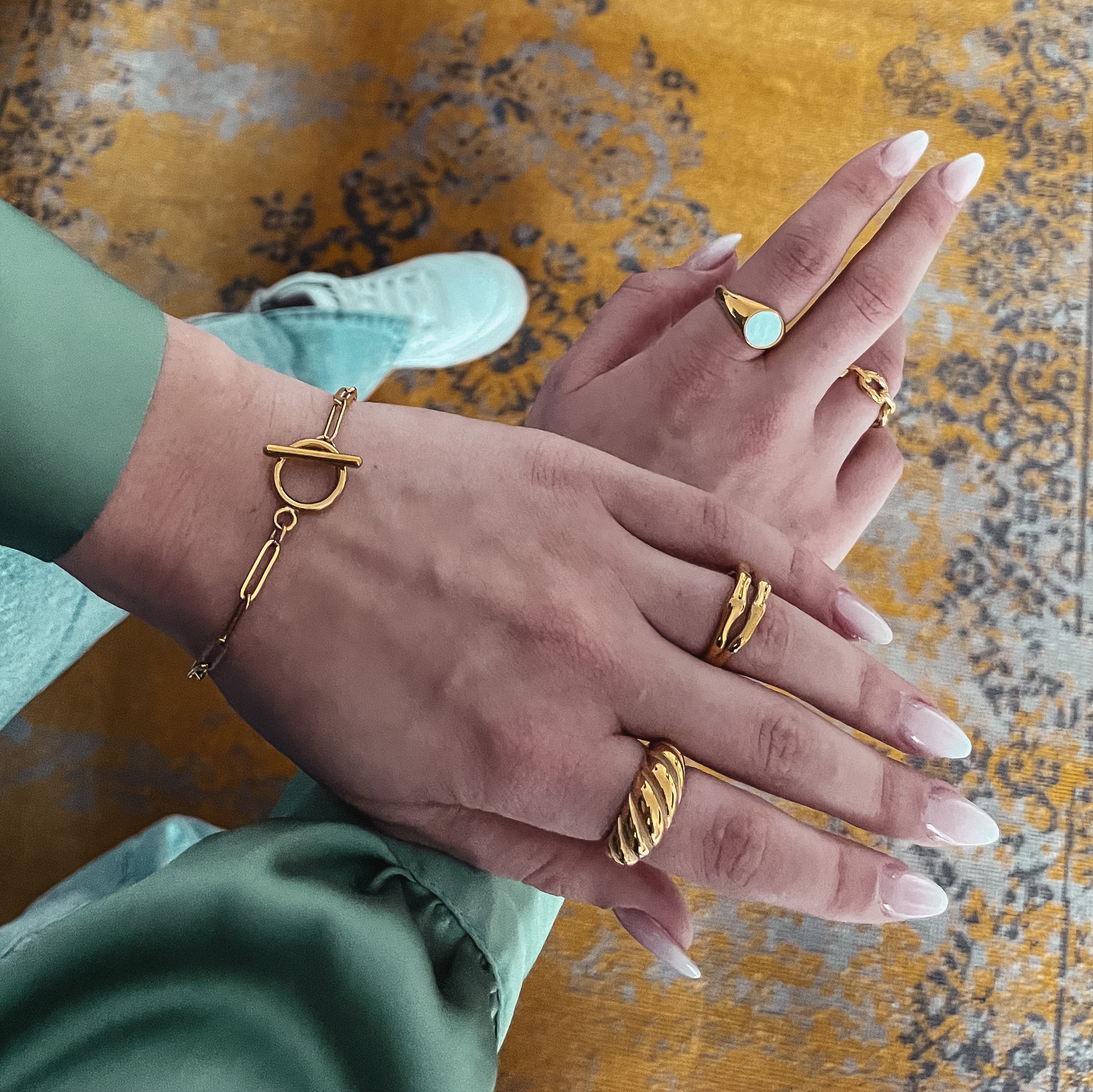 The Acutus statement bracelet is an everyday bracelet with striking links and a modern clasp. Complete your outfit and make a statement.